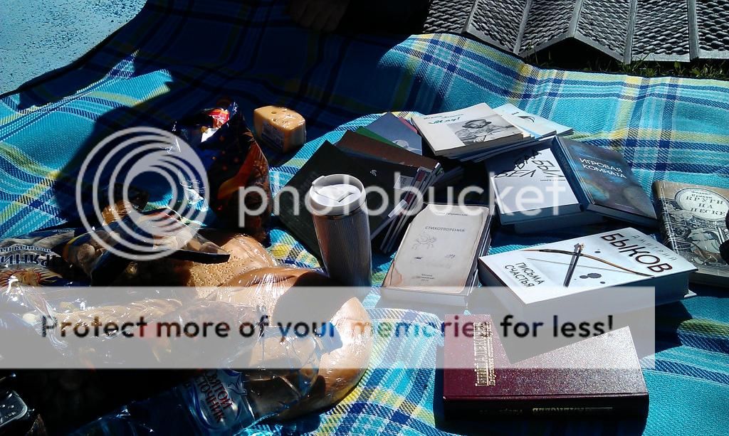 Вот кусочек поэто-пикника, увеличение по клику, книги и альманахи узнаваемы: