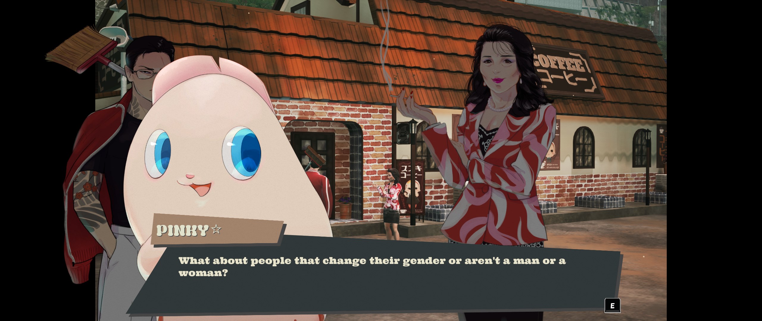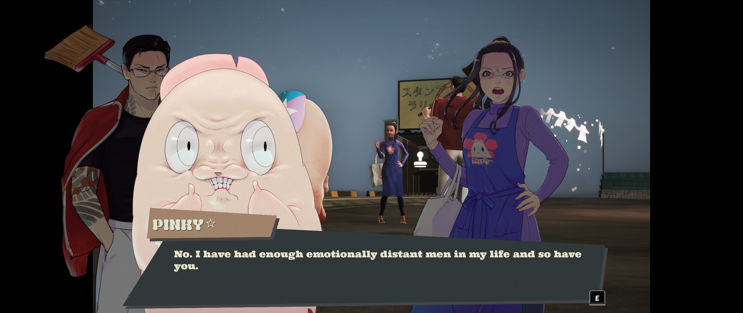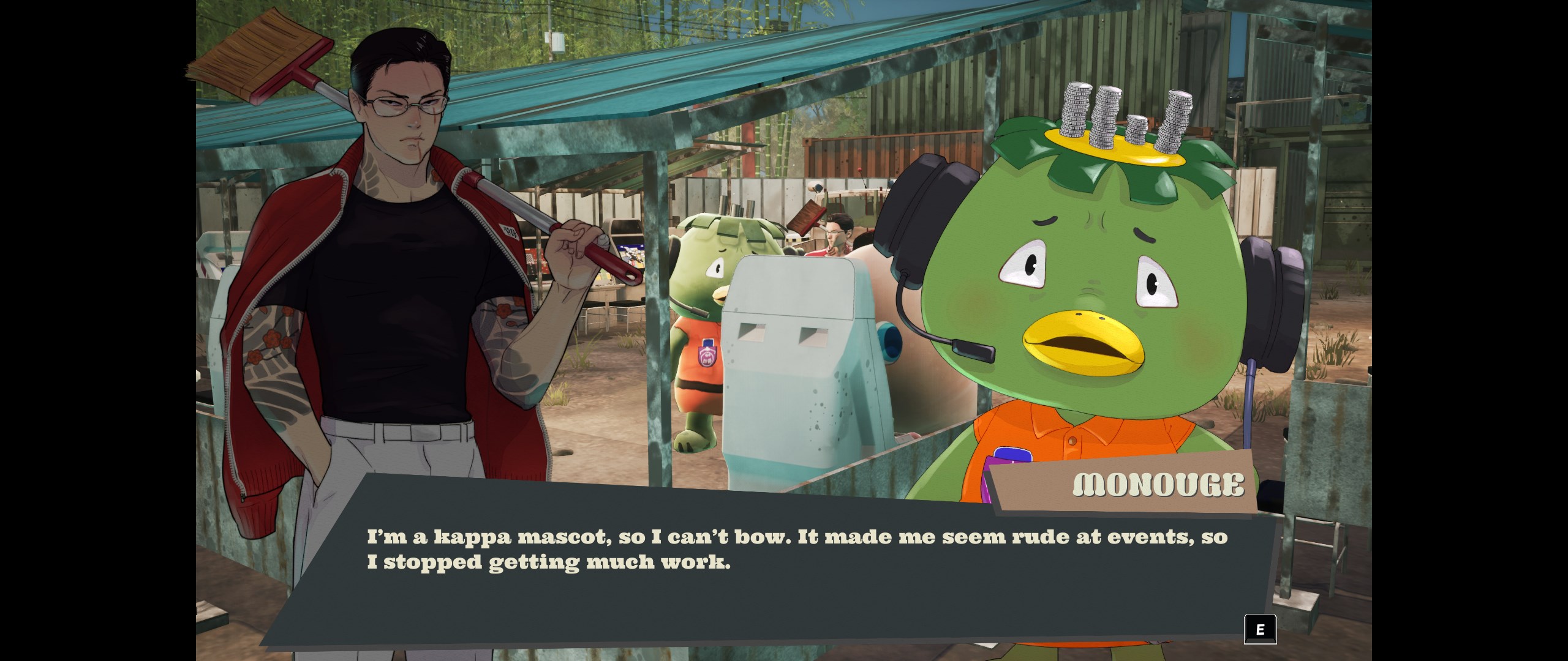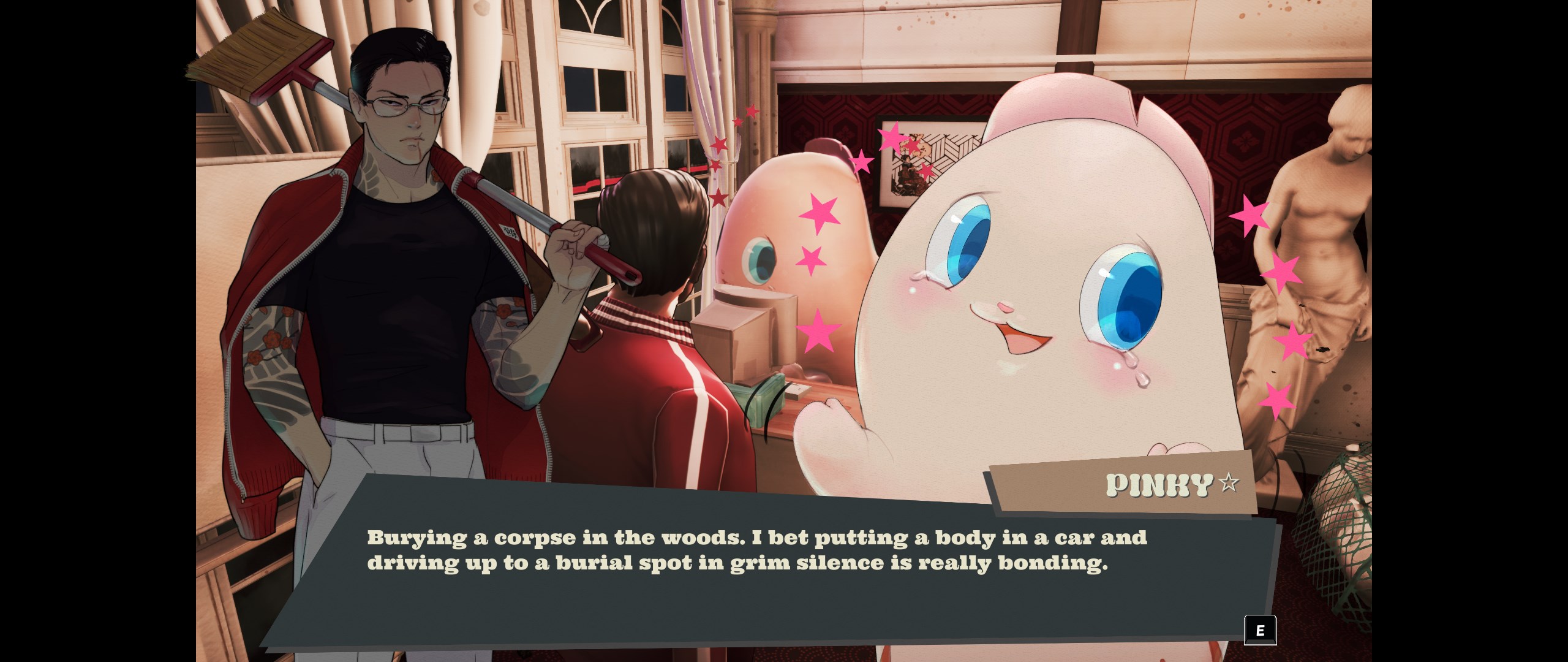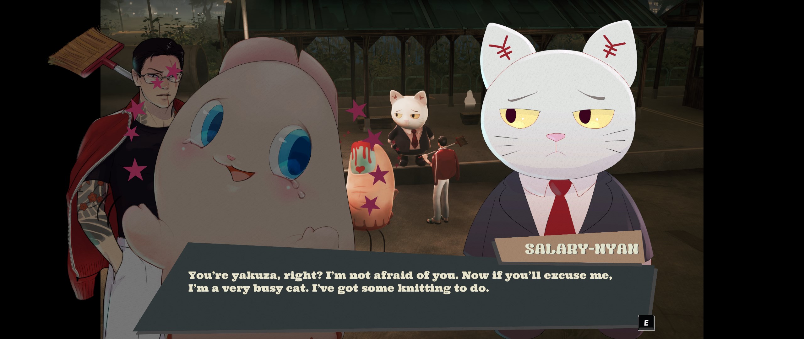 Ожидание, из демо-версии: редкая упоротость, герой-мафиози ездит в своем грузовичке по маленькому японскому городку с напарницей-Пинки (внешность няшного мизинчика, характер редкого гремлина, множество anger issues), собирая маскотов и отправляя их работать в свое агентство, что вообще происходит - непонятно.