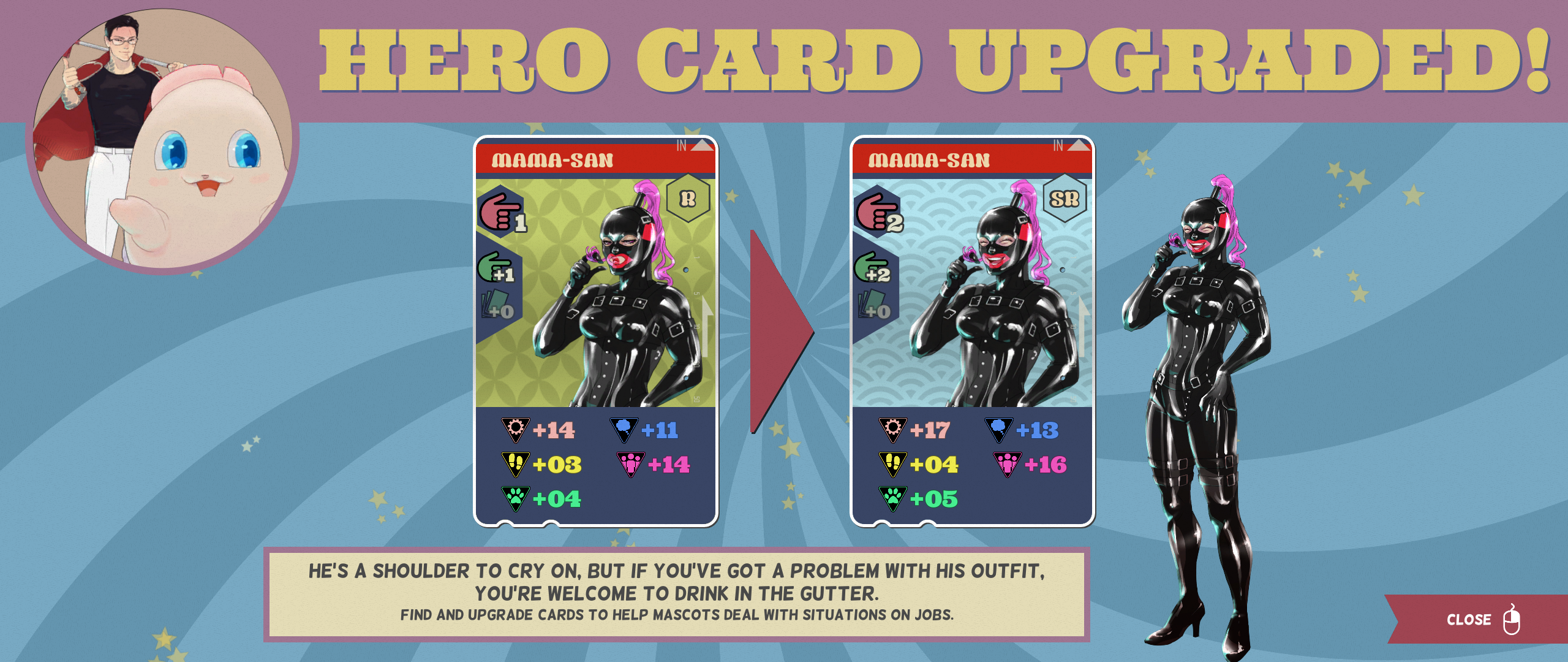 - менеджмента агентства: посылания маскотов на работу, выдавания им подходящих предметов, карточной игры с Mascot Support Heroes, апгрейдов локаций