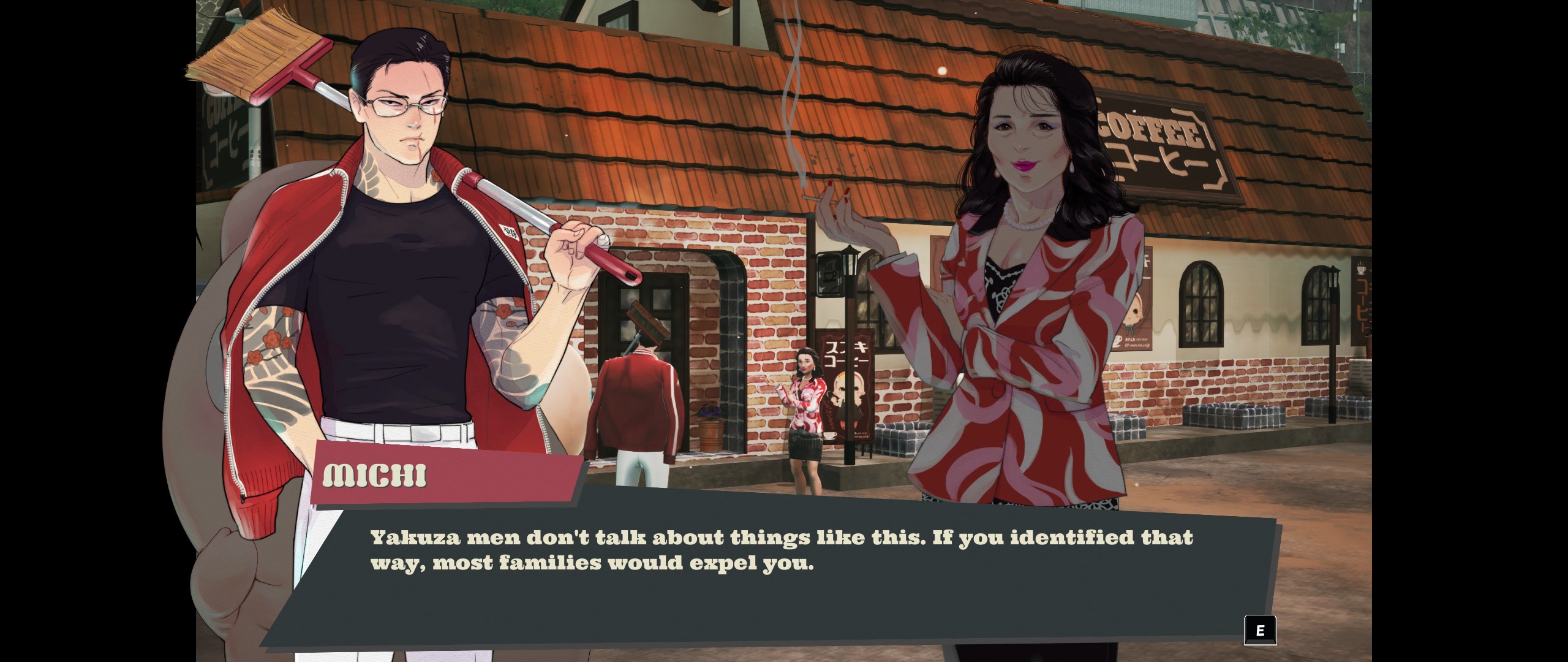 Кое-какие моменты истории изображены в виде комикса. Несюжетный, но внезапный и очень фансервисный момент: Мичи снимает рубашку, чтобы продемонстрировать свою full body yakuza tattoo. У него это Райден, бог грома.